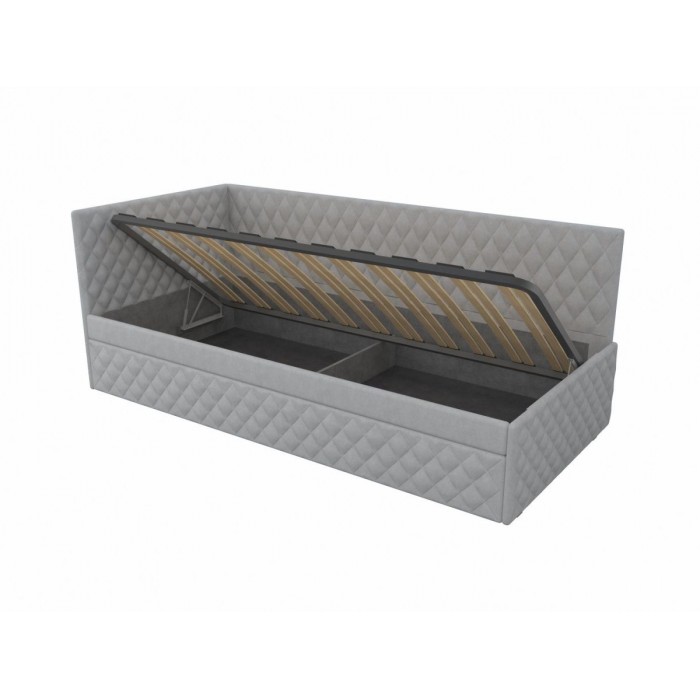 Представленная модель кровати оснащена ортопедическим основанием с подъемным механизмом.