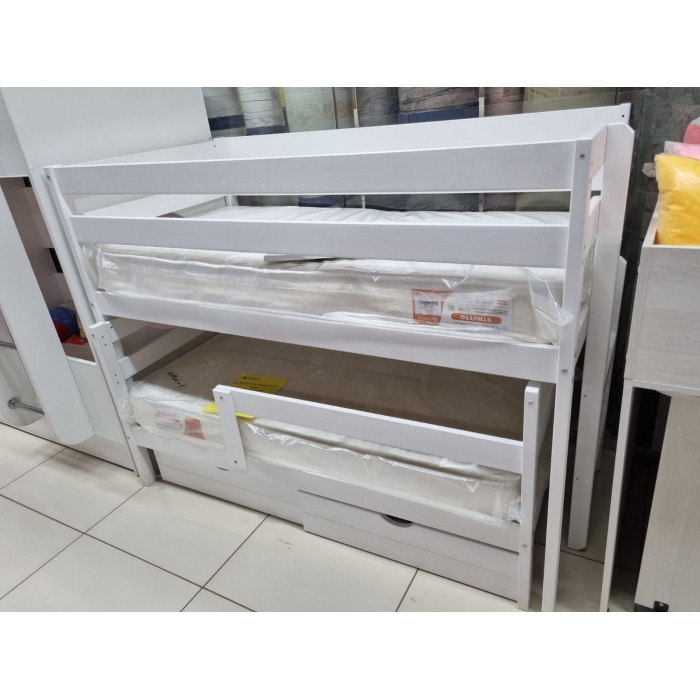 Хотя матрас в комплект не входит, вы можете дополнительно приобрести ящики, которые отлично подойдут для хранения игрушек и постельных принадлежностей, экономя пространство в комнате.
