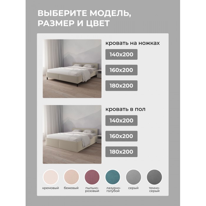 Кровать доступна в цветах микровелюра:  01,02,014,017,021,022